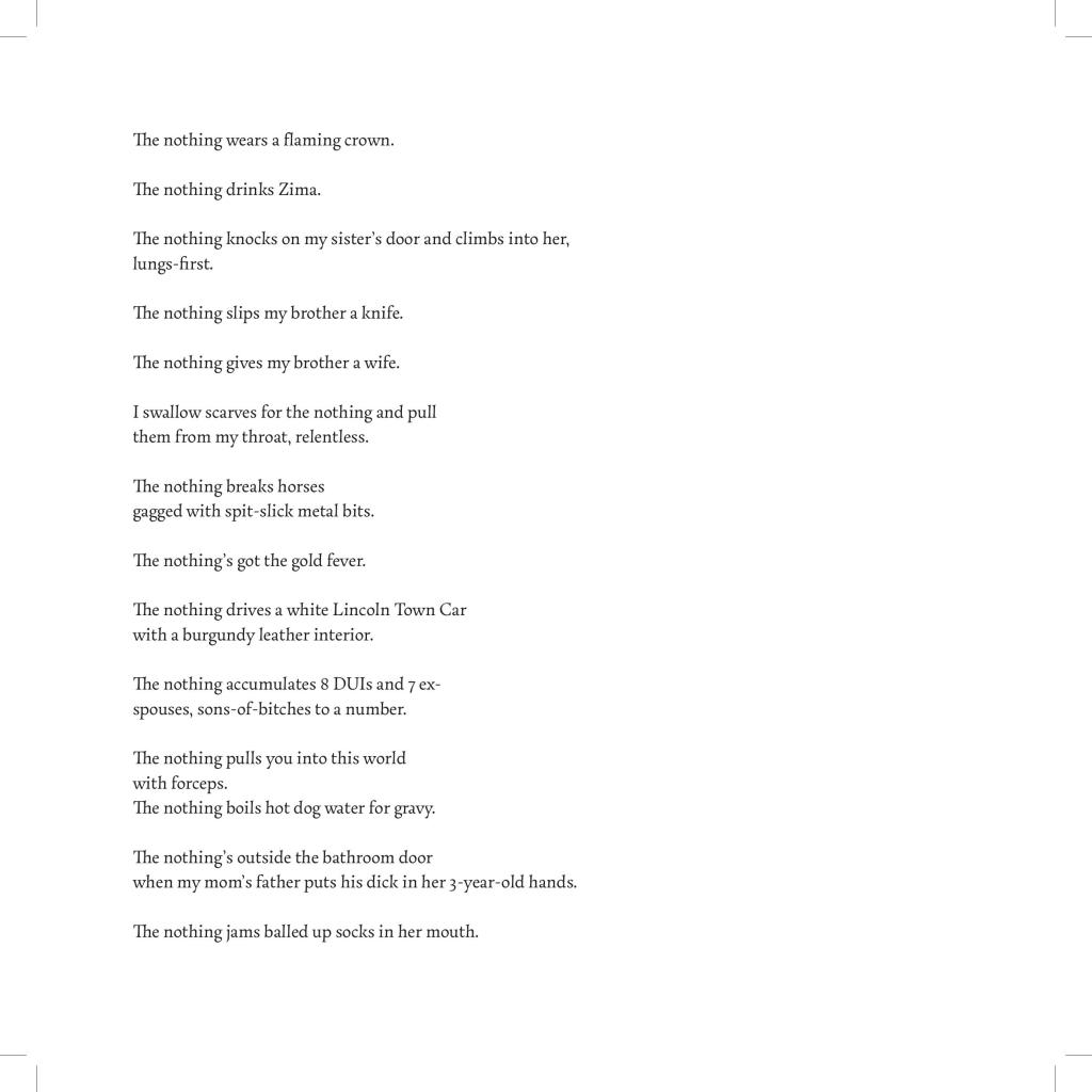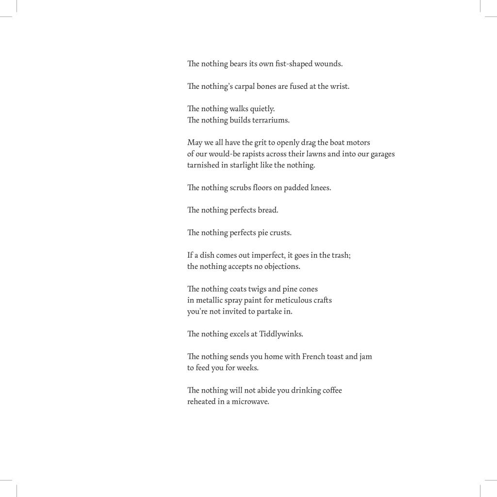 Danika Stegeman is the author of Ablation (11:11 Press, 2023) and Pilot (Spork Press, 2020). She’s a contributing editor for Conduit and serves as board treasurer for Fonograf Editions. She volunteers for the Minnesota Prison Writing Workshop. Along with Jace Brittain, she co-curates the online collaborative reading series It’s Copperhead Season. She lives in St, Paul. MN. Her website is danikastegeman.com.